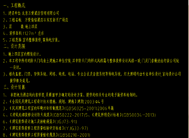 2018年的7月份,公司承接了北京一酒店管理公司的设计项目,项目名称是:万爱情侣酒店石家庄某店;工程范围:室内整体装修设计,强弱电安装设计;设计面积为1127平方米;层数:地上四层。