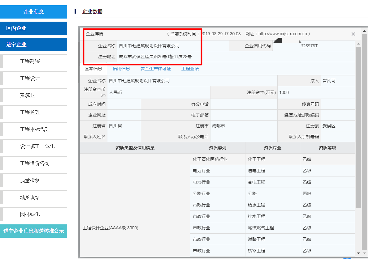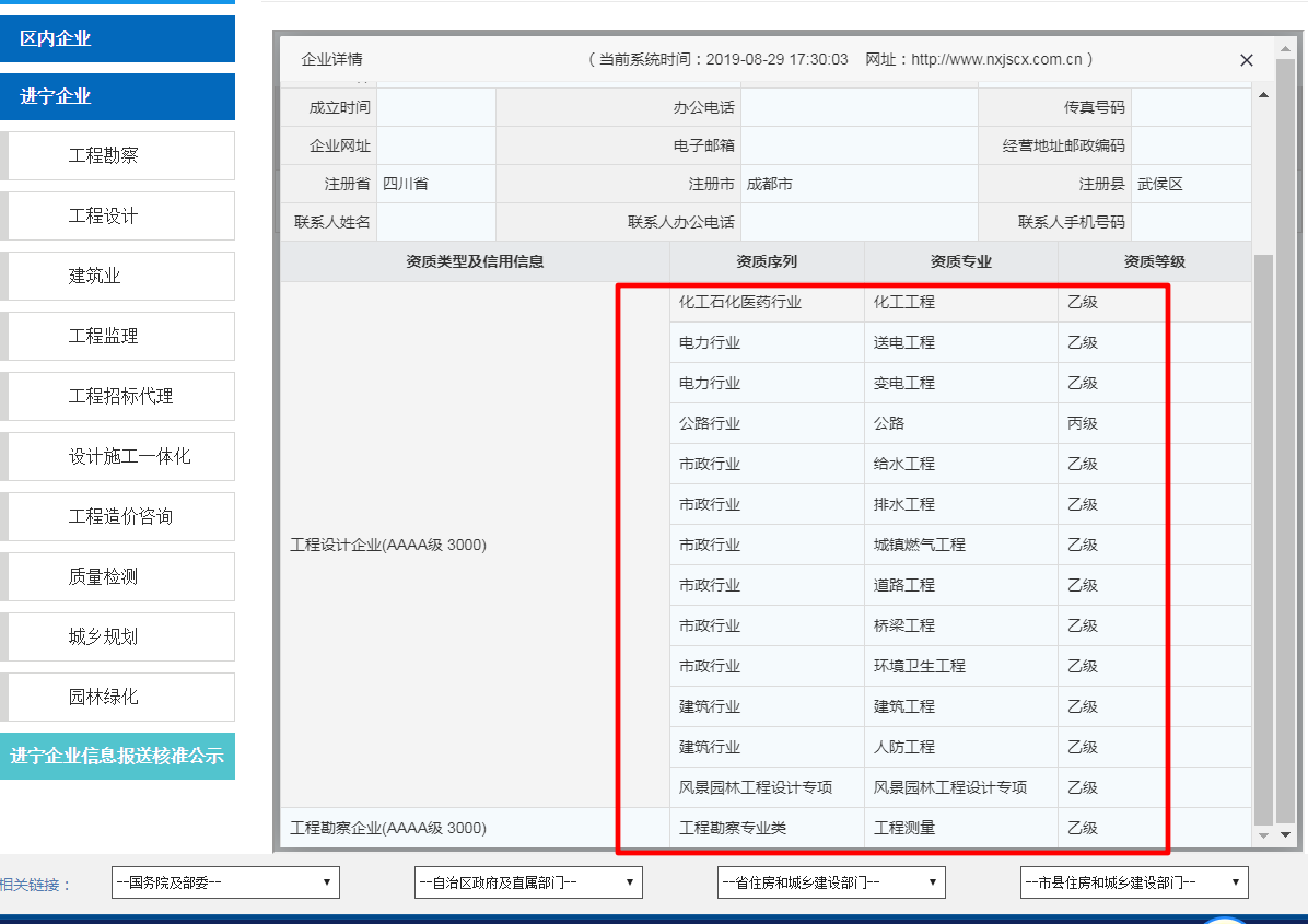 2019年4月初,设计院资质部的同事着手准备资料,处理宁夏设计备案的事情,通过网上了解到,备案需要网上系统录入公司信息人员等资料,网上审核通过后,携带公司及人员原件到现场核准,核实后方可完成备案。