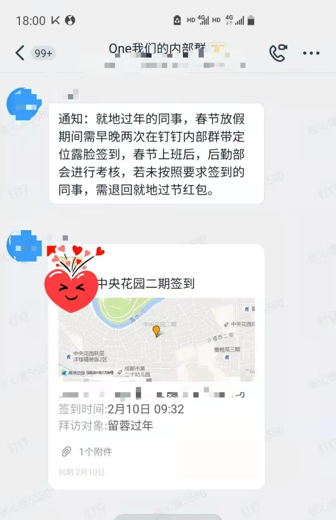 为响应国家“不返乡,留在原地过年”的号召,集团采取了错峰,错时,有序放假,所有留原地过年的员工,每日早晚钉钉定位打卡,减少流动,在最大限度上防范疫情传播。