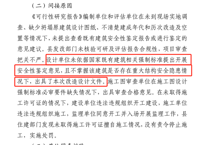 分析该事故的间接原因,该项目设计公司在没有既有建筑安全性鉴定报告情况下,违规设计出图;在没有地勘报告情况下,违规对新建消防泵房工程设计出图。